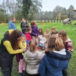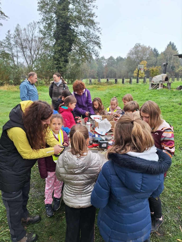 Učenci so se razdelili v več skupin in sodelovali pri štirih delavnicah, ki so združevale ustvarjalnost, gibanje in okoljsko vzgojo.