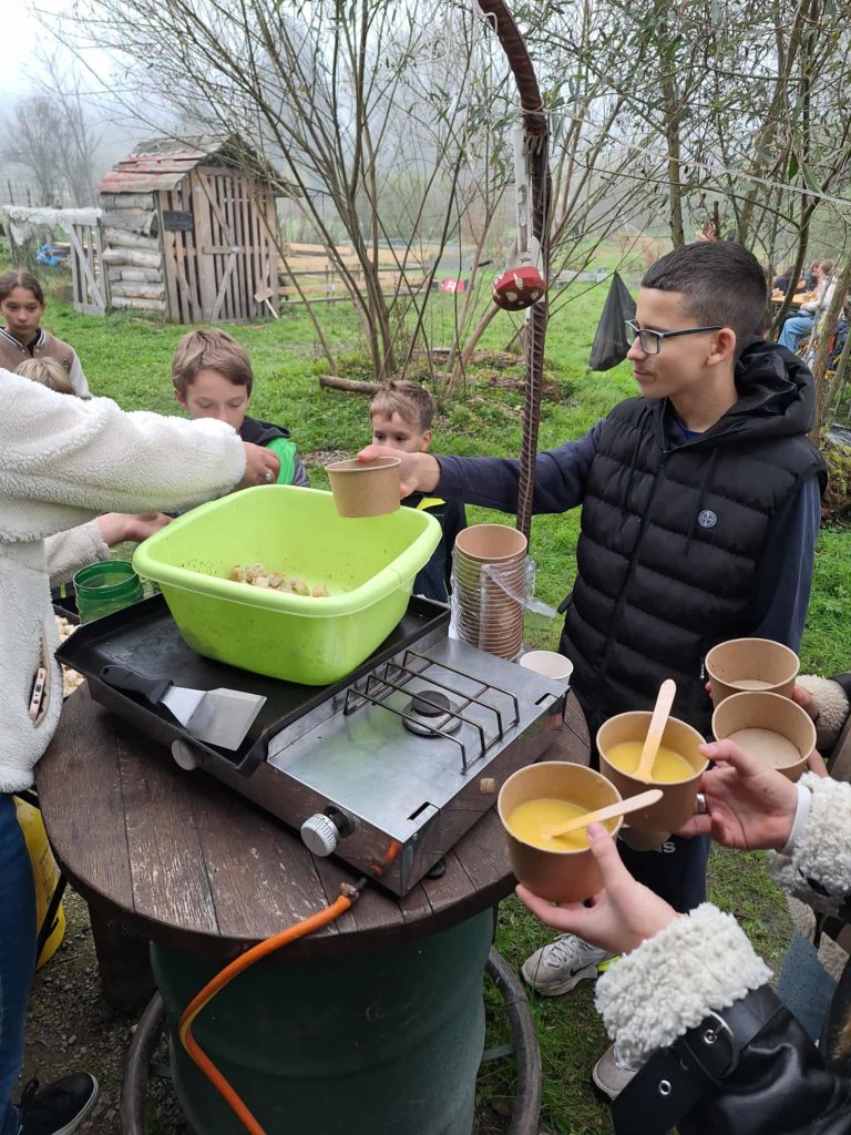 Na kuharski delavnici so učenci pripravljali bučno juho s krompirjem, popečene kruhke z zelišči in olivnim oljem ter kostanj, pri tem pa spoznavali pomen lokalno pridelane hrane in zmanjševanja odpadkov.