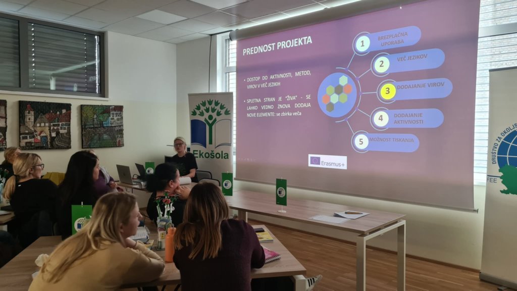 V okviru delavnice smo učiteljem predstavili projektno idejo, teme ter spletno platformo, nato pa so si udeleženci sami ogledali že naložene aktivnosti. Hitro se je pokazalo, da so gradiva jasna, pregledna in zelo prilagodljiva, kar je učiteljem omogočilo, da so že med srečanjem razmišljali, kako bi jih lahko brez večjih prilagoditev uporabili pri delu s svojimi učenci.