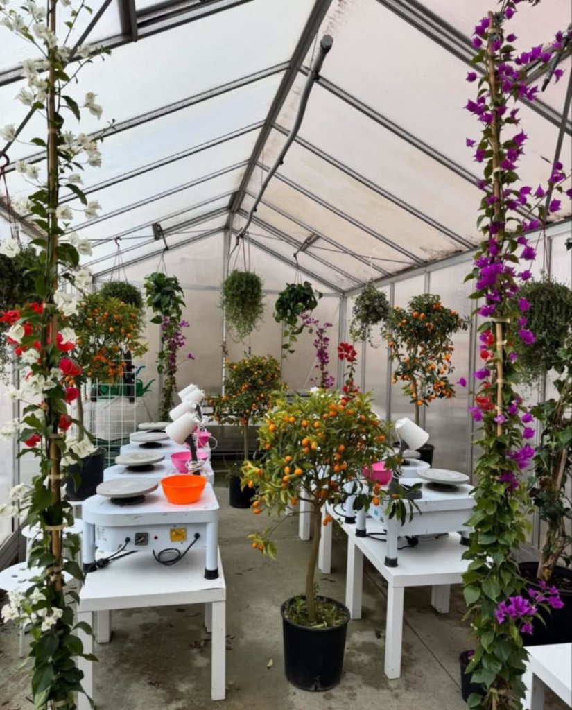 »Rastlinjak LAMIE se tako spremeni v pravi keramični atelje,« pojasnjuje mojster keramike Fabio Lenti, predsednik združenja Torniamo APS. »Vsa oprema v njem deluje na energijo, ki jo proizvajajo fotovoltaični paneli na strehi šole. Gre za zaprt sistem: ko prižgemo peč, se segreje celotna notranjost, kar preprečuje izgubo toplote in hkrati ustvarja idealno okolje za rast rastlin.«
