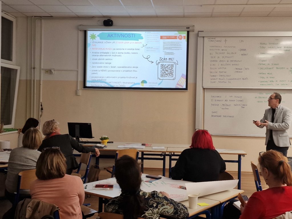 V nadaljevanju so bile predstavljene tudi projektne aktivnosti programa Ekošola, povezane s temo embalaže, krožnega gospodarstva in odgovorne potrošnje. Udeleženci so spoznali primere dejavnosti, ki jih šole že uspešno izvajajo – od analiz embalaže v šolski prehrani do ozaveščevalnih kampanj in ustvarjalnih nalog, s katerimi dijaki aktivno sodelujejo pri soustvarjanju sprememb.