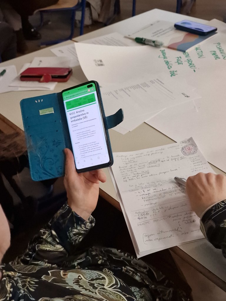 Pomembno dodano vrednost srečanju je prinesla praktična delavnica, v kateri so udeleženci skozi konkretne primere raziskovali različne vrste embalaže, njen namen, vpliv na okolje ter možnosti za bolj trajnostne rešitve. Delavnica je pokazala, kako lahko praktično, izkustveno delo dijakom pomaga razumeti kompleksnost problema odpadkov in jih spodbuja k iskanju rešitev v svojem neposrednem okolju.
