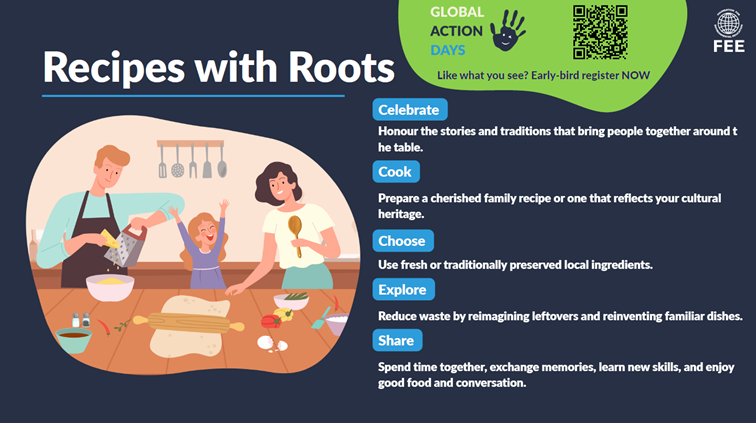 V Sloveniji lahko sodelovanje in aktivnosti Global Action Days povežete s projektom Hrana ni za tjavendan, ki prav tako spodbuja odgovoren odnos do hrane, zmanjševanje izgub in odpadne hrane ter podporo lokalnim, trajnostnim prehranskim sistemom.