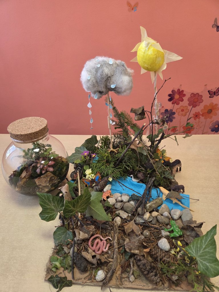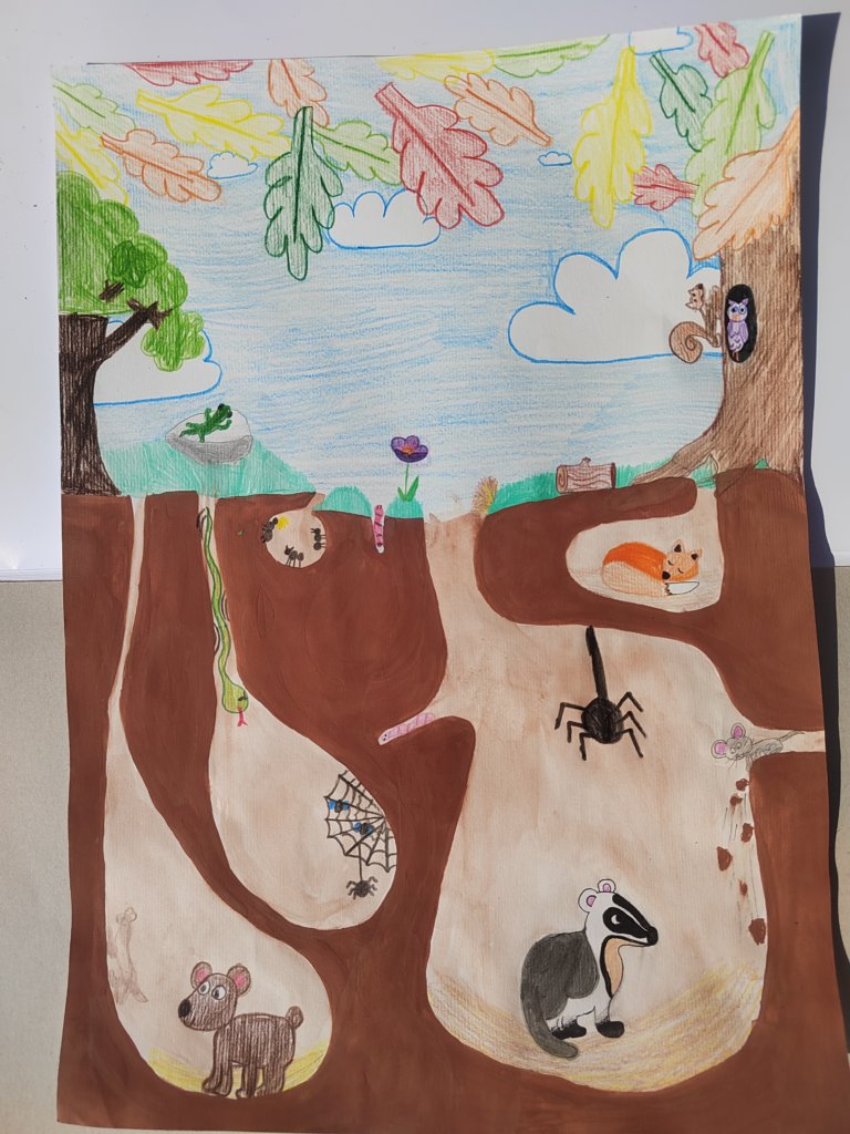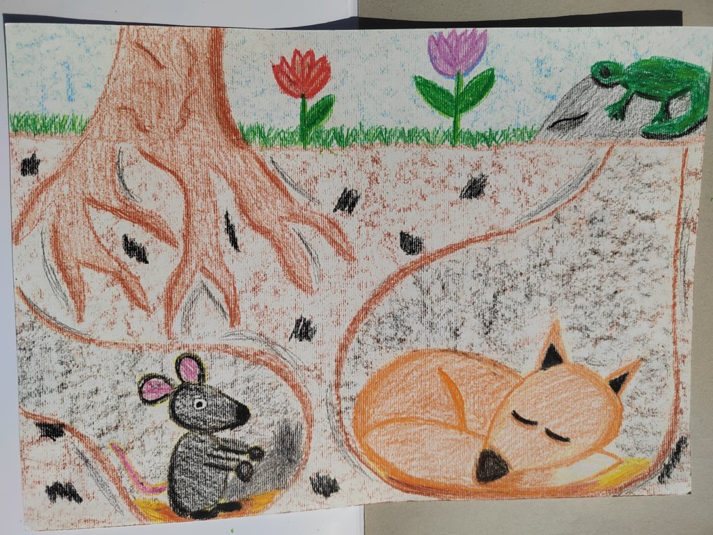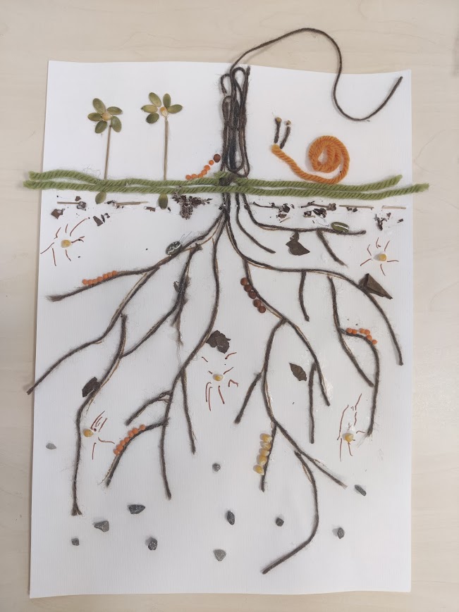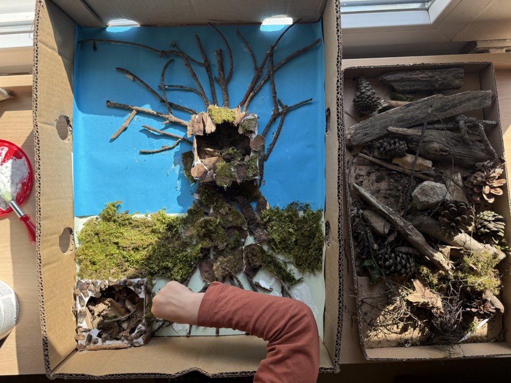 - Skriti svet daleč pod krošnjami – raziskovali so manj viden del gozda, kot so korenine, glive, žuželke in talni organizmi, ter ustvarjali tudi z uporabo naravnih materialov.