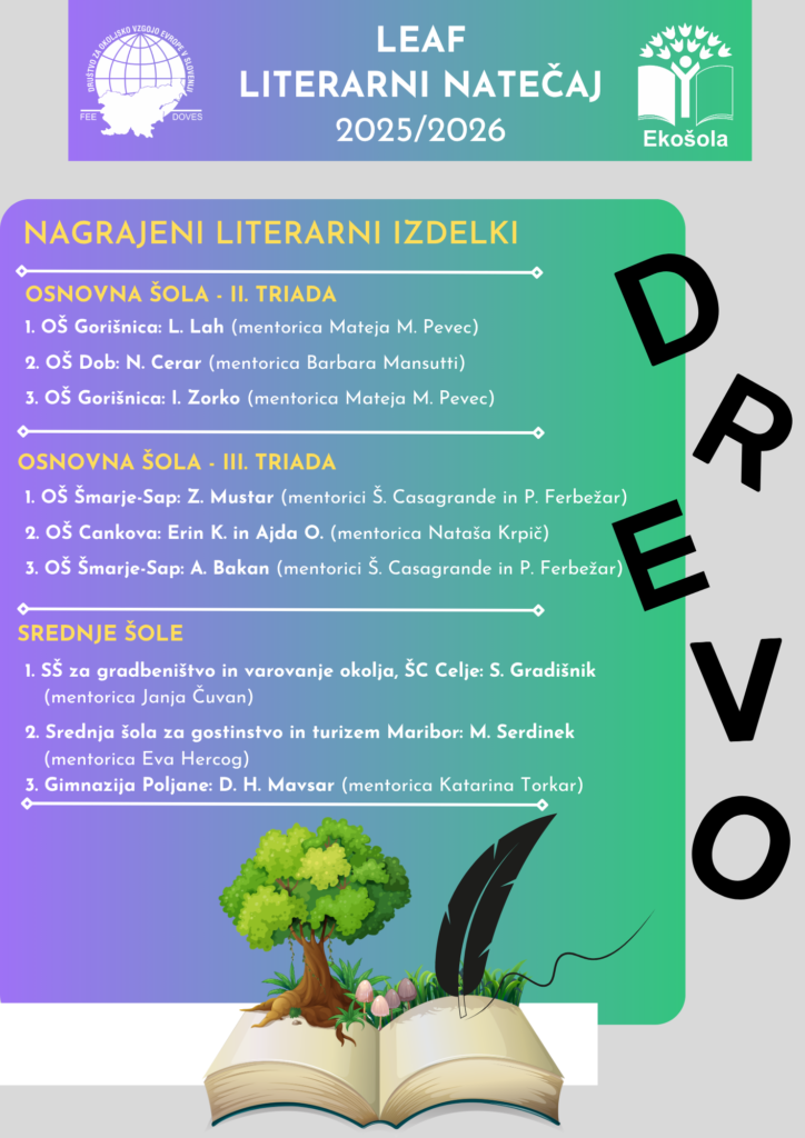 V okviru projekta LEAF smo tudi v letošnjem šolskem letu uspešno izvedli likovni in literarni natečaj, ki sta znova pokazala, kako globoko mladi razumejo pomen gozdov in narave ter kako izjemno znajo svoje misli in občutke izraziti skozi umetnost.