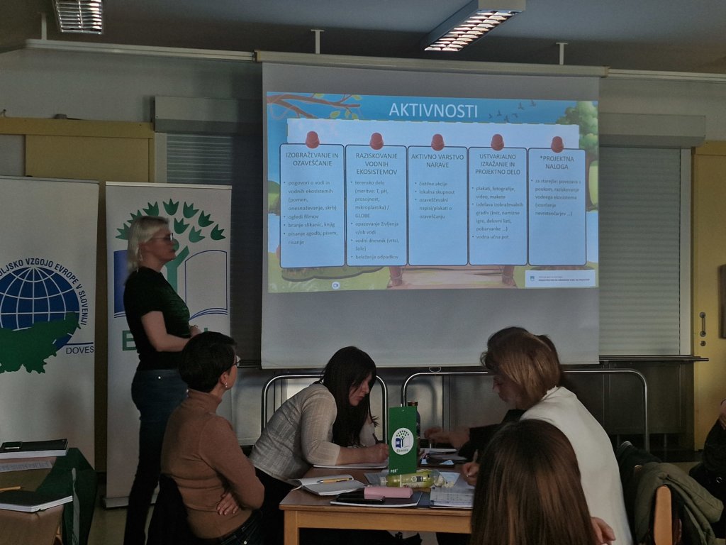 Na srečanju smo predstavili tudi primer dobre prakse, ki ga je pripravila učiteljica Zala Lesnik z Osnovne šole Ig. Učencem je skozi projektne dejavnosti približala pomen vode in biotske pestrosti ter jih spodbudila k razmišljanju o odgovornem ravnanju z vodnimi viri. V okviru učnega procesa so učenci spoznavali različne oblike vode in vodni krog, izvajali eksperimente, razmišljali o problemu pomanjkanja pitne vode ter raziskovali vplive onesnaževanja na vodne ekosisteme.