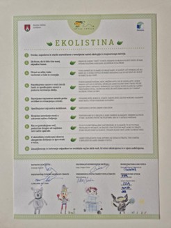 Otroci iz najstarejših skupin so ob opazovanju eko maskot ustvarjali risbe. Vsaka maskota je v njih prebudila unikatno ustvarjalnost. Med številnimi likovnimi izdelki smo za vsako enoto izbrali najbolj izvirnega, ki je nato postal del vizualne podobe nove Ekolistine in ji dodal poseben otroški pečat. Dodali smo še »uradni del« Ekolistine – prostor za podpise – in tako je bila nova Ekolistina pripravljena za tisk.