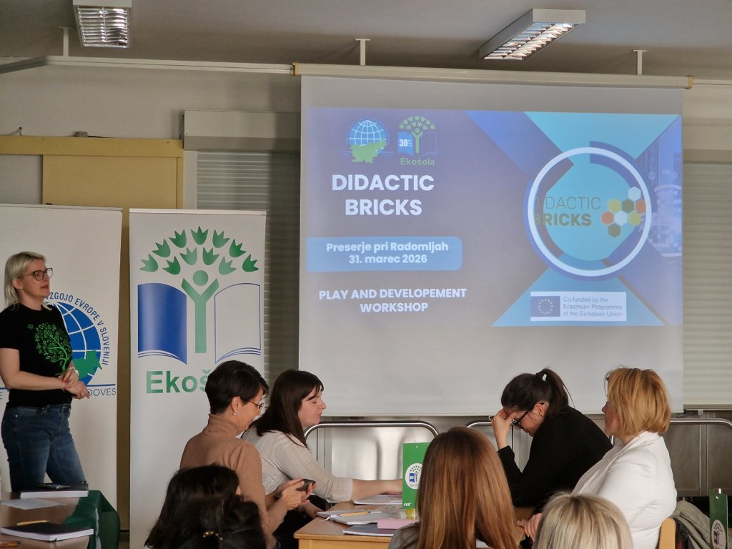 Na regijskem srečanju koordinatorjev in učiteljev programa Ekošola, ki je potekalo 31. marca 2026 na OŠ Preserje pri Radomljah, smo izvedli tudi praktično delavnico v okviru mednarodnega Erasmus+ projekta Didactic Bricks.