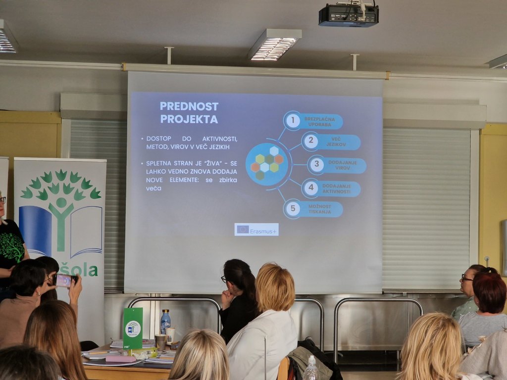 Poseben poudarek smo namenili tudi aktivnemu soustvarjanju vsebin. Udeležencem smo predstavili, kako lahko sami prispevajo svoje aktivnosti in s tem soustvarjajo zbirko didaktičnih gradiv. Skupaj smo si ogledali tudi obrazec za podajanje povratnih informacij, saj učitelje vabimo k testiranju platforme in deljenju svojih izkušenj, ki bodo pomembno prispevale k njenemu nadaljnjemu razvoju.