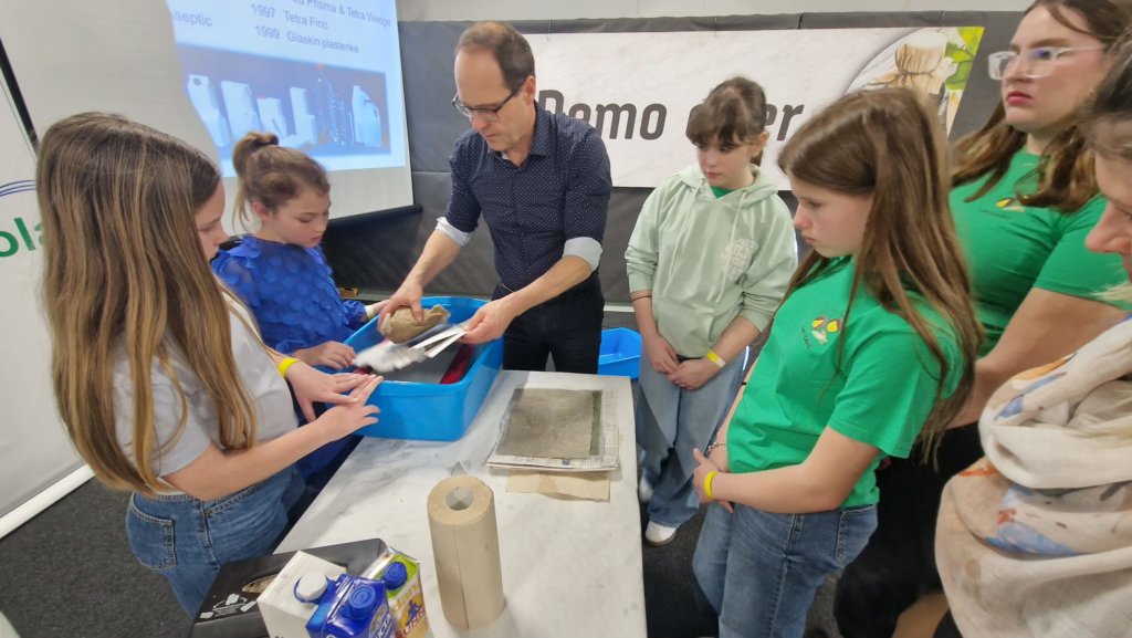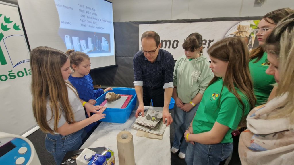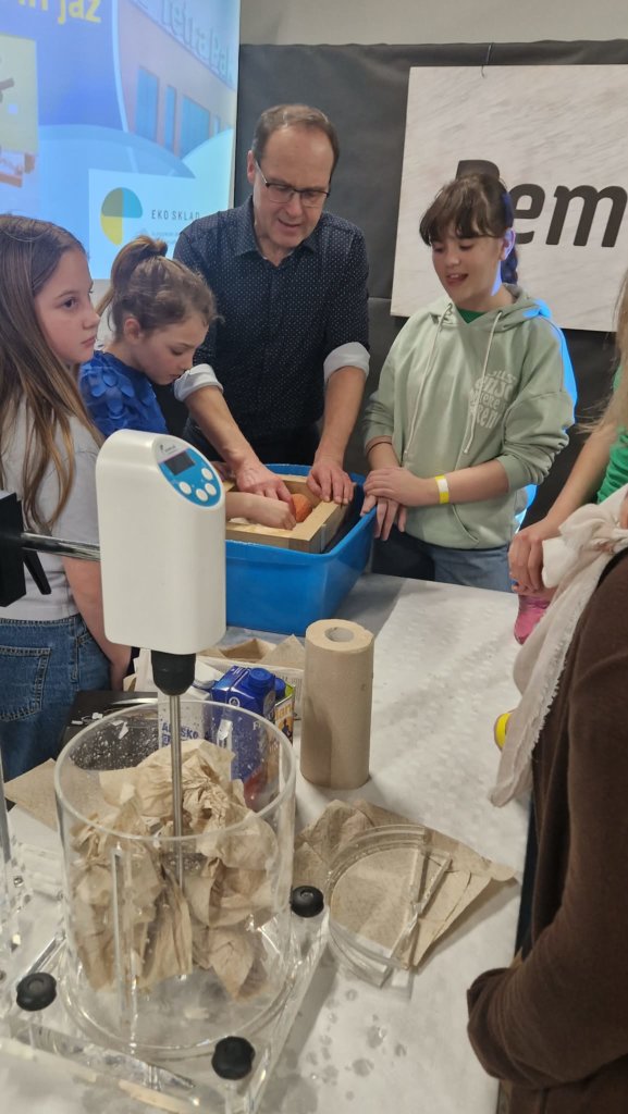 V okviru sejma Altermed & Fit&Well, ki je 13. marca 2026 potekal na Celjskem sejmu, smo v programu Ekošola za učence in njihove mentorje izvedli praktično izobraževalno delavnico Embalaža in jaz o recikliranju kartonske embalaže za mleko in sokove (KEMS).