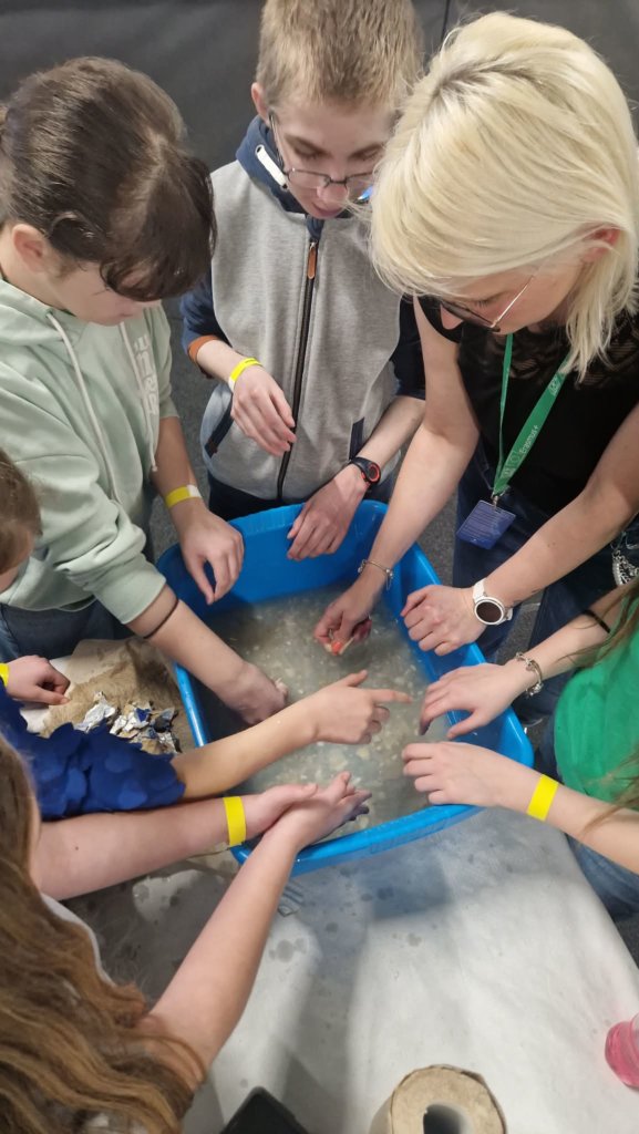V praktičnem delu delavnice so učenci sami sodelovali pri izdelavi papirja iz reciklirane embalaže, pri čemer so spoznali, kako se vlakna iz kartonskega dela embalaže ponovno uporabijo kot surovina. Posebej zanimiv del delavnice je bil tudi prikaz, kateri izdelki lahko nastanejo iz reciklirane KEMS – od papirnatih izdelkov do različnih podajalnikov in drugih materialov, ki se uporabljajo v industriji.