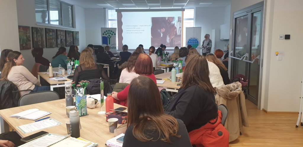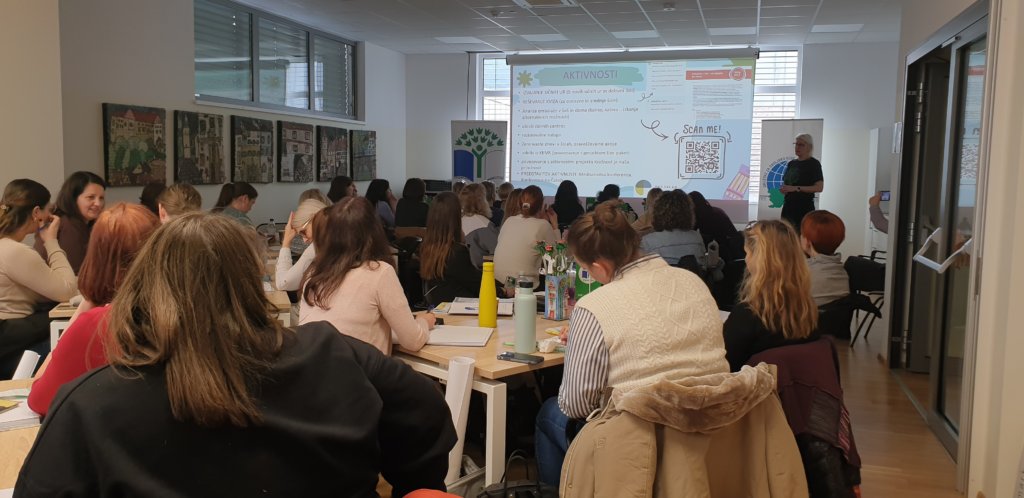 Srečanje je ponudilo varen in spodbuden prostor za razmislek o izzivih, s katerimi se učitelji srečujejo pri izvajanju projektov in aktivnosti programa Ekošola, hkrati pa tudi za predstavitev številnih primerov dobrih praks in praktičnih delavnic, ki so pokazale, kako lahko trajnostne vsebine z ustreznimi prilagoditvami, potrpežljivostjo in srčnostjo približamo prav vsem otrokom. Učitelji so delili konkretne izkušnje in dejavnosti, pri katerih so v ospredju izkustveno učenje, delo s čutili, jasna struktura ter majhni koraki, ki otrokom omogočajo občutek uspeha in pripadnosti.
