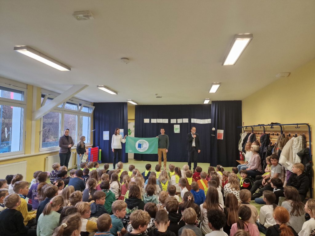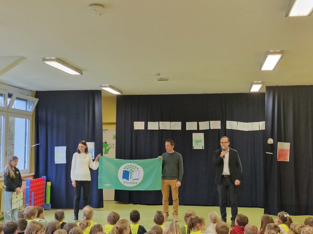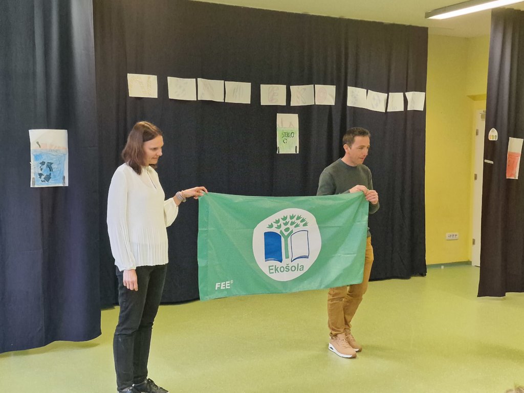 Ob tej priložnosti smo jim ponovno predali tudi zeleno zastavo. Zastava potrjuje dolgoletno predano delo učencev, učiteljev in vodstva šole na področju trajnosti, okoljske ozaveščenosti in odgovornega ravnanja z naravnimi viri. Njihov trud se kaže v številnih projektih, urejenih šolskih vrtovih, izobraževalnih dejavnostih ter vsakodnevnih okoljskih pobudah, ki jih učenci aktivno soustvarjajo.